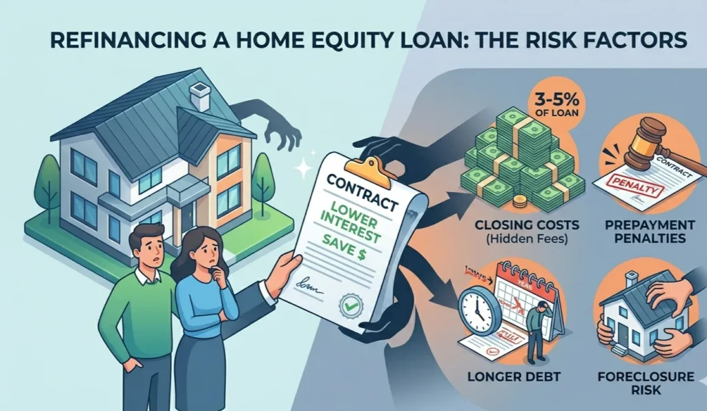 Check the fine print on your existing home equity loan. Some lenders include a prepayment penalty clause, meaning they will charge you a hefty fee if you pay off the loan early (which is exactly what happens when you refinance). This fee could easily negate the savings you hoped to achieve.